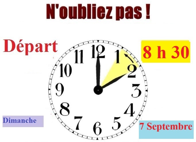 Le jeudi 4 septembre le départ se fera l'après midi à 14 h.